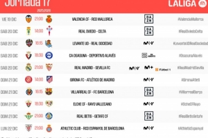 体育资讯11月19日讯 西甲第17轮各场开球时间公布,12月21日4点皇马vs塞维利亚,23:15比利亚雷亚尔vs巴萨。