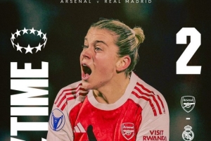 此役上半场卡罗琳·威尔为皇马女足先拔头筹,下半场阿莱西娅·鲁索连进两球,最终阿森纳女足2-1逆转皇马女足。