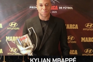体育资讯11月25日讯 马卡报官方宣布,皇马前锋姆巴佩在今日领取了该媒体所设立的24-25赛季“皮奇奇”奖。