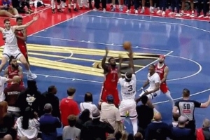 看着都疼!申京肘击维金斯把后者打回更衣室 自己也4犯了