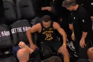 GIF-库里暂停时坐不住 坐下突然弹起