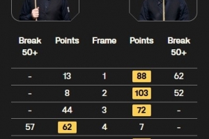 斯科特·唐纳森打出两杆50+(62、52),马克·艾伦打出单杆57分,上半场斯科特·唐纳森3-1领先马克·艾伦,中场休息后斯科特·唐纳森连胜三局,最终6-1战胜马克·艾伦,晋级16强。