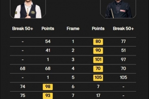 马克·塞尔比打出一杆105分和五杆50+(77、51、97、70、66),贾德·特鲁姆普打出三杆50+(68、74、75)