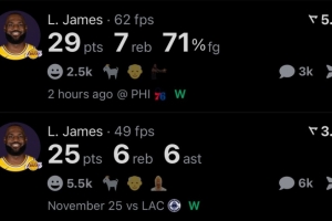 此役湖人球星詹姆斯全场比赛出战34分钟,17投12中,三分球6中4,2罚1中得到赛季新高29分7板6助。