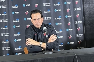 赛后采访,主帅斯波表情凝重,谈到本场失误他表示:“对手在第二节打得非常棒,而我们总在犯同样的错误,当我们无法投进球时,我们的防守会陷入困境,无法阻止对手得分。你不能让防守来完全决定胜负……不管你投不投得进三分……你需要找到其他赢球的方式。”