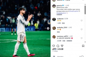 本场比赛阿森西奥首发出场,赛后他也在社媒晒出本场照片,配文鼓励球队写道:“我们配得上更多!此刻我们需要比以往更加团结,因为我们是皇马!”