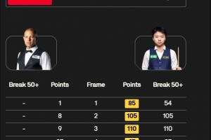 江俊发挥出色,连轰单杆54、105、110、87分,直落四局4-0零封巴里·霍金斯,晋级苏格兰公开赛32强。