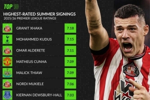 体育资讯12月18日讯 whoscored统计了本赛季英超新援的场均评分情况,桑德兰队长扎卡居首。
