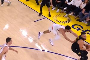 9.8秒,布克拉拽了库里,裁判漏吹;