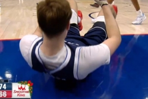 GIF-弗拉格迎着奎因上篮被犯规