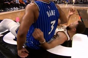 GIF-另一个角度!贝恩撞翻库里!魔术反击2+1!