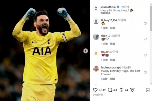 热刺官方社媒晒出洛里效力球队时期的照片,配文:“生日快乐,雨果(洛里)!”