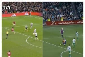 比赛第28分钟,就在多尔古破门后不到5分钟,曼联寻得一次反击机会,多尔古在大禁区左侧直接起脚吊射远门柱,但被门将没收。这球的位置与梅西当年对阵贝蒂斯的吊射极为相似。