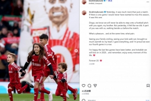 “迪奥戈,我知道我们再也无法和你一起踏上足球场了,我的兄弟。但昨天的感觉就像我们又在一起并肩作战一般。你的一部分与我们同在,赛前就陪伴在我们身边。”