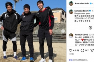 镰田大地在社媒写道:“新年快乐。和两位师父一同在沙滩训练,以此来告别2025,迎接2026。我还要更加精进。”