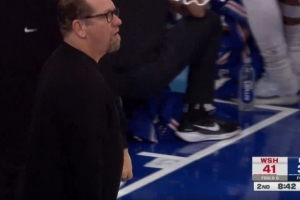 看着都疼!申京肘击维金斯把后者打回更衣室 自己也4犯了