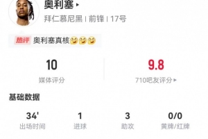 体育资讯1月18日讯 拜仁在本轮德甲焦点战5-1逆转莱比锡,奥利塞替补独造四球,本场数据如下: