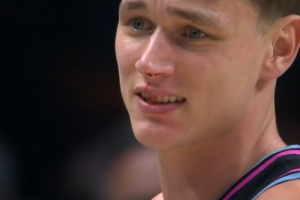 GIF-拉松防守华莱士反击上篮被打到脸部&还被吹防守犯规