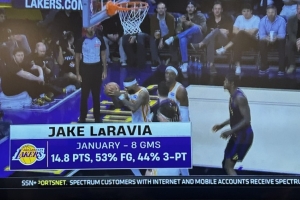 湖人客场挑战开拓者,转播方给出拉拉维亚1月份的数据:
