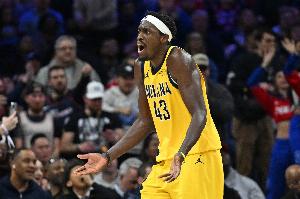 谈及防守西亚卡姆的挑战,肯威表示:“他就是联盟里已经被证明过的得分手。他知道怎么把球投出去。他冲击篮筐很有侵略性。他大概6尺9(2.06 米)、6尺10(2.08 米),所以他不是小个子。他体型相当大,却又能像后卫一样控球。他非常难对付。”