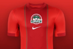 河南队新赛季主场球衣变化较大,将队徽放在了胸口处,两侧辅以垂直条纹,其设计风格在新赛季中超各队主场球衣中非常醒目。