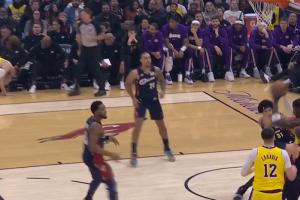 看着都疼!申京肘击维金斯把后者打回更衣室 自己也4犯了