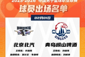 体育资讯2月1日讯 19:35北京将在主场迎战青岛,赛前大名单出炉。