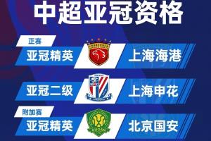 虽然上海海港(2025赛季中超联赛冠军)、北京国安(2025赛季足协杯冠军)、上海申花(2025赛季中超联赛亚军)分别受到了中国足协纪律委员会扣除新赛季职业联赛积分及罚款的追罚,但受实施处罚的主体单位(机构)不同等因素影响,他们分别参加2026/2027赛季亚冠精英联赛正赛、附加赛、亚冠二级联赛的资格不会受到影响。