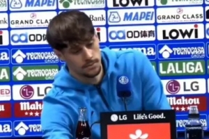 体育资讯2月5日讯 塞尔维亚国脚维尔科·比尔曼切维奇从布拉格斯巴达租借加盟赫塔费,他在首次亮相发布会中移开了镜头前的可乐,捷克媒体“blesk”报道中将其和C罗进行了“联动”。