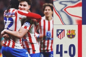 2026年国王杯,西蒙尼执教,马德里竞技4-0大胜巴塞罗那。