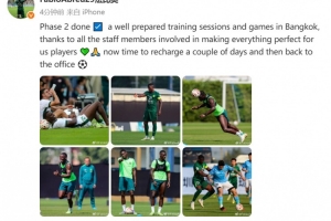 法比奥在个人社媒晒出多张图片,同时配文写道:第二阶段完成,在曼谷的训练和比赛安排得很好,感谢所有工作人员为我们球员营造了如此完美的体验。现在需要休息几天充电,然后继续工作。