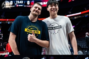赛前,杨瀚森和约基奇进行交流还合影;掘金官方发图道:“我们期待已久的会面终于到来🤝。”