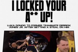 GIF-东契奇抢断前队友小琼斯后喷垃圾话:我把你给锁死了