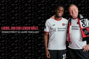 体育资讯2月24日讯 勒沃库森近期推出了一款极具情怀的白色特别版球衣,旨在庆祝其首个球迷会成立50周年。