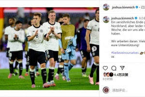 基米希社媒晒出赛后谢场的照片,并写道:“对阵北爱尔兰的比赛取得了不错的结果,但遗憾的是,这样的一周并不是我们所有人期待的。我们正在努力。非常感谢大家的支持!”