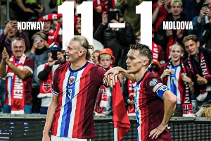 体育资讯09月10日讯 世预赛欧洲区小组赛I组第6轮,挪威主场11-1狂胜摩尔多瓦,哈兰德五子登科+助攻双响,厄德高建功+助攻双响。