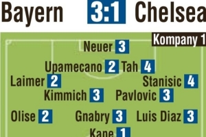 体育资讯9月18日讯 拜仁在本轮欧冠焦点战3-1力克切尔西,《图片报》在赛后为两队球员评分,凯恩获评最佳1分。