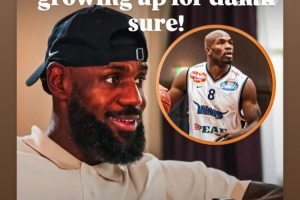 詹姆斯:“在任何级别的篮球比赛中?哦,一个和我们一起长大的孩子,他现在就像是我们的兄弟,他的名字叫德里克-塔弗,我们都成长于城市的同一侧,但在我们小时候,他比我年长,他和马弗里克年纪一样,所以比我大两三岁。他10岁时就比所有人都强壮。他是左撇子,肌肉发达,比所有人都强壮,你知道他要怎么打,但你完全无法防住他。”