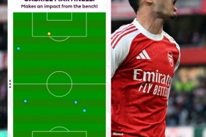体育资讯9月22日讯 英超官方发布数据,马丁内利替补登场后仅触球5次,便为阿森纳1-1逼平曼城。