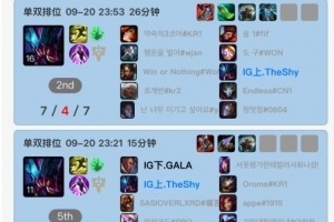 体育资讯9月22日讯 根据韩服排位统计小程序显示,iG选手五人近日在韩服加练,GALA、Wei加练至今日凌晨两三点,Theshy狂玩上单挖掘机。