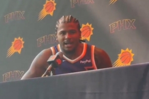 体育资讯9月25日讯 太阳今天开启训练营,新援杰伦-格林接受采访,谈到后场搭档布克。