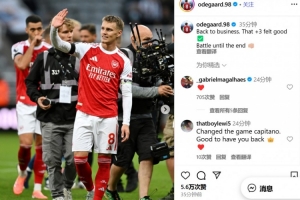 体育资讯9月29日讯 阿森纳在本轮英超2-1绝杀逆转纽卡,赛后,厄德高更新了社交媒体。