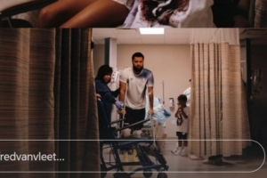 今天,范弗里特在INS晒出了自己在病房的照片,有孩子作陪,并且已经拄拐下地行走。