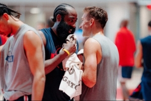 体育资讯10月2日讯 今天,快船官方晒出了球队训练营第二天的照片,哈登和博格丹喜笑颜开。