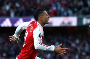 据Squawka统计,马丁内利在48场各赛事比赛中为阿森纳破门,阿森纳39胜9平保持不败。