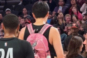 开拓者球迷嘉年华🤣新秀杨瀚森和乐福背着书包学跳舞 队友鼓掌