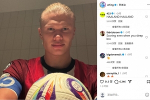 赛后,哈兰德更新社媒晒出比赛用球,但他没有任何的配文。