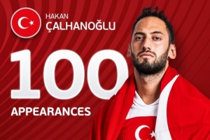 恰尔汗奥卢自2013年开始为土耳其效力,在这100场比赛中贡献21球18助攻。