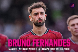 体育资讯10月14日讯 Opta统计了B费加盟曼联以来出场、缺席情况下球队的战绩,并做出对比。