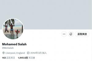 目前萨拉赫推特头像为生活照